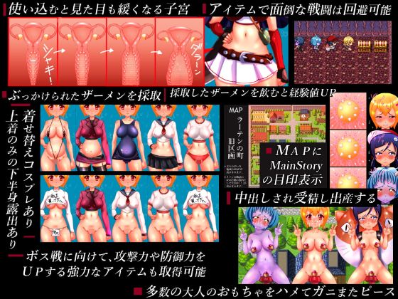 Genre: 2DCG, 2D game, Animated, Prostitution, Creampie, Pregnancy/Impregnation, Group sex, Female protagonist, Oral sex, Anal sex, Vaginal sex, Urination, Turn based combat