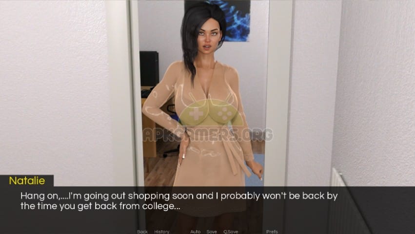 In this game you play the role of James, who finishing up his last term in college and works at a Coffee shop (part-time). His father (Kevin) works abroad a lot, leaving his frustrated younger hot wife (Natalie) and his son James (Protagonist) at home alone together. And the two of them have been clashing ever since Natalie moved in.